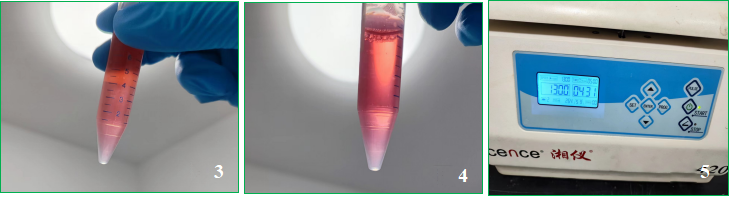 1. When the number of organoids is low or their volume is small: Centrifuge at 300g for 5 minutes at 4°C, discard the supernatant, add 1ml of Organoid Passaging Buffer G to resuspend, and transfer into a 1.5ml centrifuge tube. Centrifuge at 300g for 5 minutes at 4°C (as shown in Figure 5), discard the liquid, and proceed to step 3.