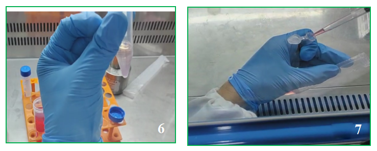 2. When the number of organoids is high or their volume is large: Centrifuge at 300g for 5 minutes at 4°C, discard the supernatant, add an appropriate amount of Organoid Digestion Liquid D (1-2 times the volume of the organoid suspension) and digest on a super clean bench for 2-3 minutes (you can pipette gently 1-2 times during the process) (as shown in Figure 6). Add an appropriate amount of Organoid Passaging Buffer G to terminate the digestion (the ratio of Buffer G to Digestion Liquid D should be 5:1). Centrifuge at 300g for 5 minutes at 4°C, discard the supernatant, add 1ml of Organoid Passaging Buffer G to resuspend and transfer into a 1.5ml centrifuge tube (as shown in Figure 7). Centrifuge at 300g for 5 minutes at 4°C, discard the liquid, and proceed to step 3 (as shown in Figure 4).