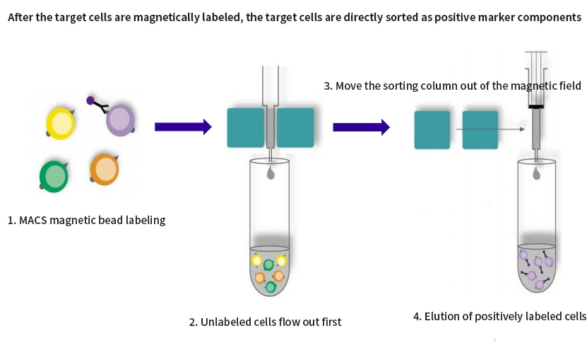 Positive sorting: After the target cells are labeled by magnetic beads, they are directly sorted as positive components. The sorted cells do not need to be removed from the MACS microbeads and can be used immediately for culture or subsequent manipulation. This method can enrich magnetically labeled target cells 10,000-fold. The purity of positive sorting is better, especially for some rare cells that need to be enriched, and the recovery rate is higher;
