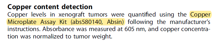 To attribute cuproptosis sensitization solely to the FDX1 pathway, the team had to exclude differential copper accumulation. The Absin Copper Microplate Assay Kit (abs580140) was chosen for its micro-scale compatibility with PDX samples.