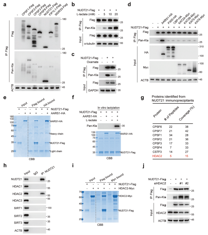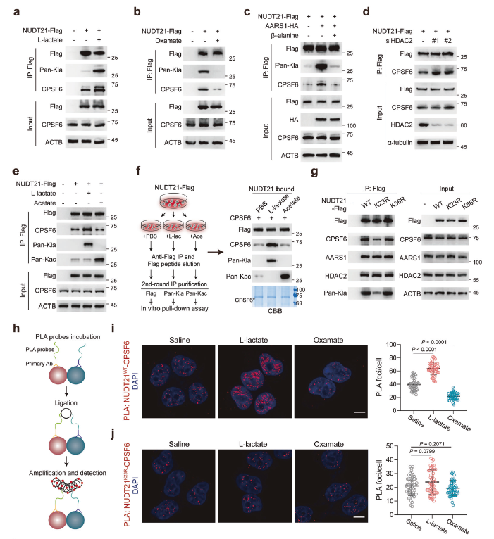 3. Molecular determinant: Quantitative lactyl-proteomics identified NUDT21 (CFIm-25) as the key reader. Lactylation at K23 enhances NUDT21–CPSF6 interaction, promotes CFIm complex assembly and selectively lengthens FDX1 3′-UTR, reducing FDX1 protein abundance.