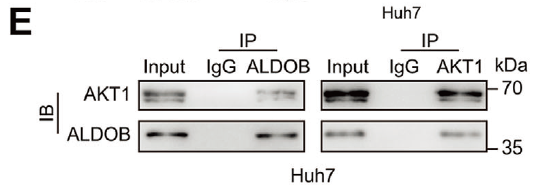 - Captured endogenous ALDOB in complex with AKT1, demonstrating direct binding (Fig. 4E);
