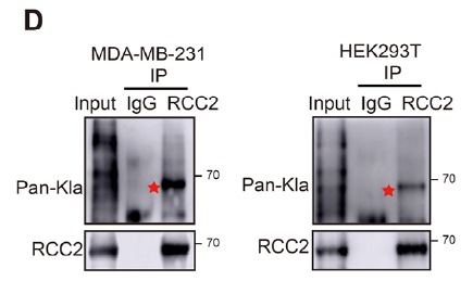 - Detection of endogenous RCC2 lactylation (Fig. 2D): IP of RCC2 followed by Pan-Kla immunoblot;