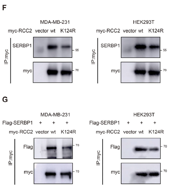 - Validation of RCC2–SERBP1 interaction (Figs. 4G–H, 6F–G);