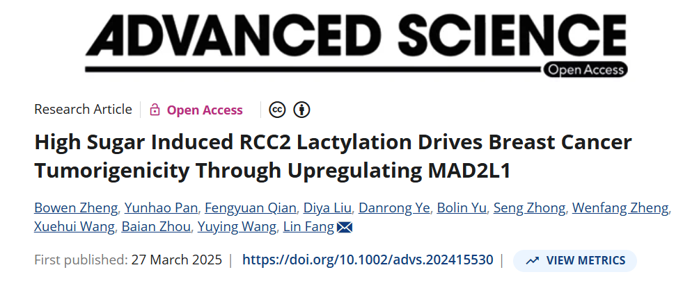 Title: High Sugar Induced RCC2 Lactylation Drives Breast Cancer Tumorigenicity Through Upregulating MAD2L1