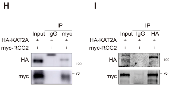 - Confirmation of KAT2A–RCC2 binding (Figs. 3H–I).