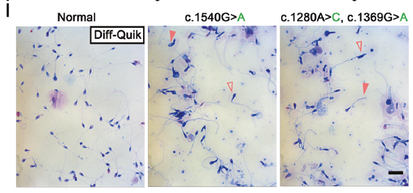 Fig. 1: HNRNPR mutation-induced acrosome loss and morphological anomalies (original Fig. 1i–j)