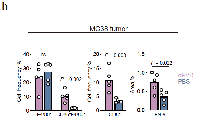 - IFN-γ-positive area fraction increases, validating the pivotal pathway "PVR blockade → T-cell activation → IFN-γ secretion" (sFigure 2h);