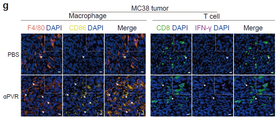 - Multiplex IHC confirms increased CD8⁺ T cells, CD86⁺F4/80⁺ pro-inflammatory macrophages and IFN-γ secretion post anti-PVR treatment (sFigure 2g,h), directly evidencing TME reprogramming.