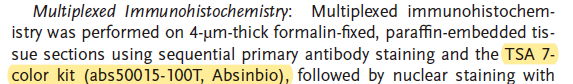 | TSA 7-color kit | abs50015 | Multiplex immunohistochemistry |