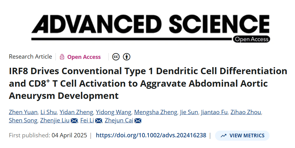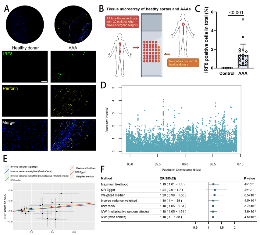 Abdominal aortic aneurysm (AAA), a globally prevalent and lethal vascular disorder, is characterized by a complex pathogenesis and lacks effective pharmacological interventions. A landmark study recently published in Advanced Science has, for the first time, delineated that interferon regulatory factor 8 (IRF8) exacerbates aortic wall injury by driving conventional type 1 dendritic cell (cDC1) differentiation and CD8+ T-cell activation, thereby offering a novel therapeutic target for AAA. The Absin mIHC kit underpinned a pivotal experimental step in this work and witnessed this major scientific breakthrough.
