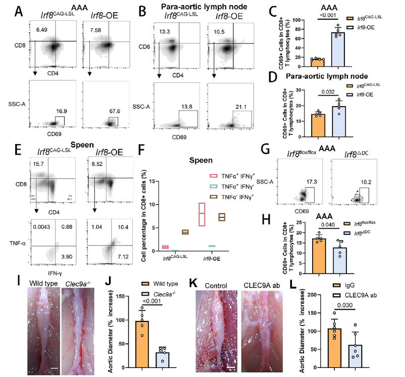 IRF8–cDC1–CD8+ T-cell axis governs AAA progression (Fig. 4A–L)
