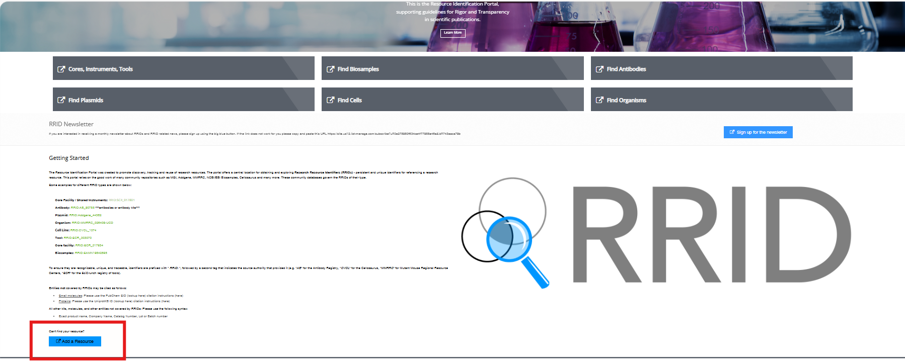 (1) Navigate to https://scicrunch.org/resources and select the appropriate resource category;