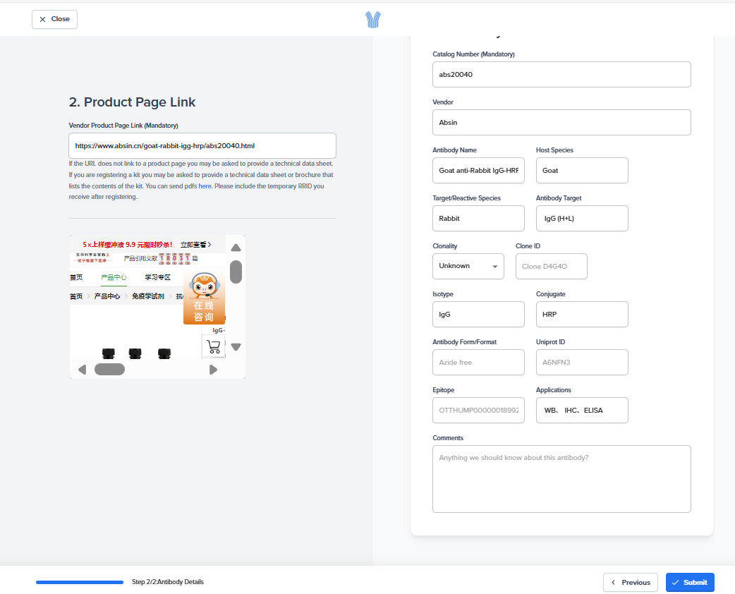 Upon submission, a provisional RRID will be generated. The identifier will become publicly available following database curation and approval.