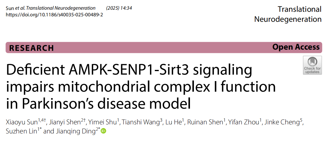 [IF 15.2] Absin Products Facilitate PD Mechanism Research: Novel Discovery of Mitochondrial Dysfunction Induced by Disrupted AMPK-SENP1-Sirt3 Signaling