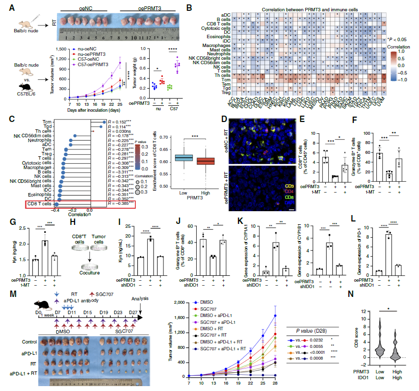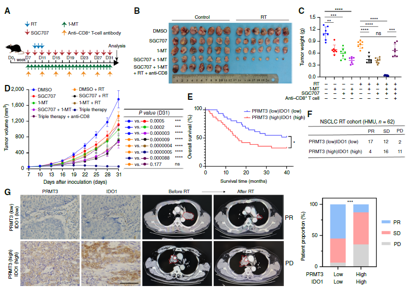 5. Validating Therapeutic Strategies: In PDX models and patient-derived organoids (PDO), combined inhibition of PRMT3 (SGC707) and IDO1 (1-MT) was confirmed to effectively block the above regulatory axis, reverse radioresistance and activate anti-tumor immunity, providing evidence for clinical combination therapy.