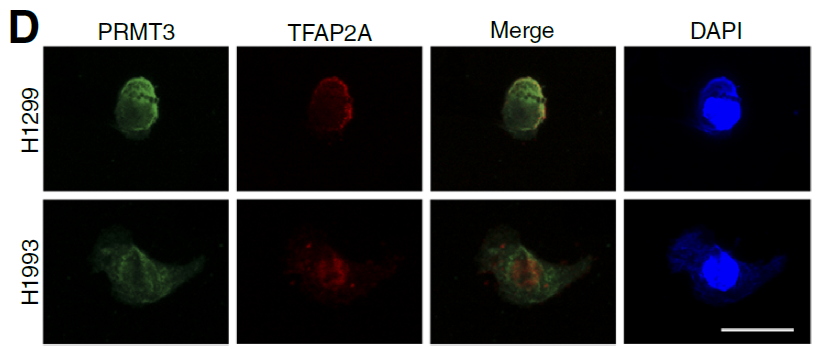 1. Colocalization Validation of PRMT3 and TFAP2A: Through staining of H1299 and H1993 cells with this kit, clear colocalization signals of PRMT3 and TFAP2A in the nucleus were observed (Fig. 5D), directly confirming their intracellular interaction and providing prerequisite evidence for subsequent Co-IP experiments.
