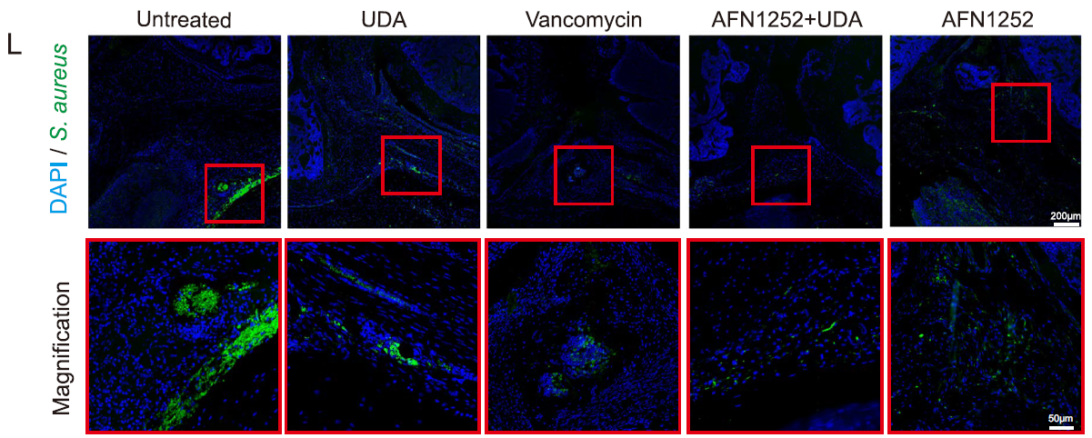 1. Application Scenario: In situ detection of S. aureus aggregation in murine joint tissue (Fig. 7L);
