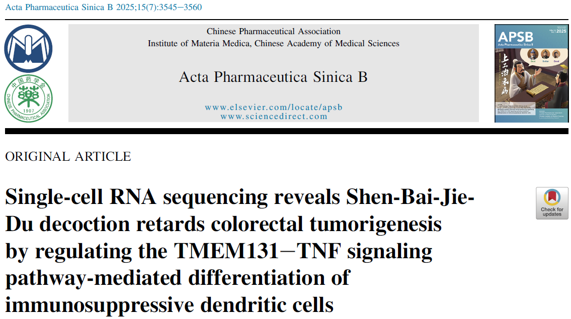 Colorectal cancer (CRC), as a malignancy with high global incidence, features dynamic changes in the tumor microenvironment (TME) as critical regulatory factors during its progression from adenoma to adenocarcinoma. Recently, a multi-institutional research team from Nanjing University of Chinese Medicine and collaborators published a landmark study in Acta Pharmaceutica Sinica B. Utilizing single-cell RNA sequencing (scRNA-seq) and other advanced technologies, the study elucidated for the first time the molecular mechanism by which Shen-Bai-Jie-Du Decoction (SBJDD) inhibits colorectal tumorigenesis through regulating TMEM131-TNF signaling pathway-mediated differentiation of immunosuppressive dendritic cells. Absin, as a key reagent supplier for this research, provided reliable support for critical experimental components including immune cell detection and signaling pathway validation with multiple high-quality products, facilitating the research team's discovery of novel targets for traditional Chinese medicine (TCM) modulation of the tumor microenvironment.