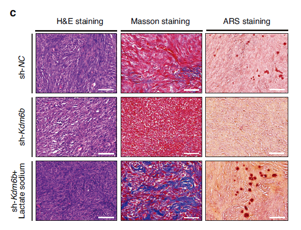 In vivo ectopic mineralization models demonstrated that sodium lactate supplementation significantly restored mineralized nodule formation and collagen fiber synthesis in the KDM6B knockdown group (Fig. 7c), and elevated tissue lactylation levels (Fig. 7d), providing potential strategies for clinical translation.